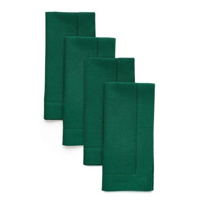Linen Dinner Napkins for Valentines Day - Classic Hemstitch by Solino Home, Handcrafted and Machine Washable