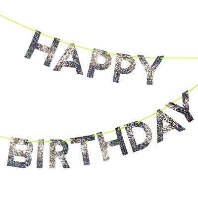 Meri Meri Silver Happy Birthday Garland (8' with excess cord - Pack of 1)