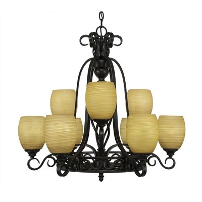 Toltec Lighting Elegante 9 - Light Chandelier in Dark Granite with 5" Cayenne Linen Shade