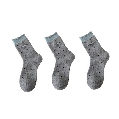 Anna-Kaci Women's 3-Pair Polka Dot Crew Socks with Embroidered Dog Detail Ruffle Cuff Soft Knit Everyday Sock Set - Gray