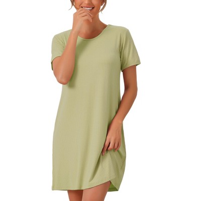 cheibear Women's Crew Neck Ribbed Knit Modal Short Sleeve Nightgowns