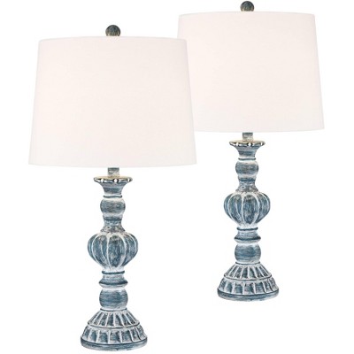Regency Hill Tanya Country Cottage Table Lamps 26 1/2" High Set of 2 Blue Wash Cream Fabric Drum Shade for Bedroom Living Room Bedside Nightstand Kids