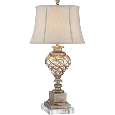 Regency Hill Rivera Traditional Table Lamp 27 3/4" Tall Clear Glass with Nightlight LED White Shade for Bedroom Living Room Bedside Nightstand Office