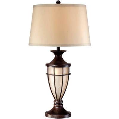 Robert Louis Tiffany Alfred Mission Table Lamp 26" High Bronze with Nightlight Stained Art Glass Shade for Bedroom Living Room Bedside Nightstand Home