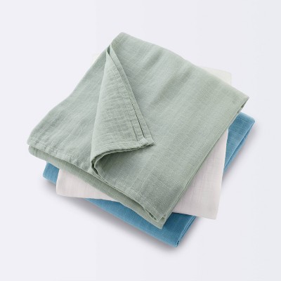 Muslin Swaddle Baby Blanket - Blue Neutrals - 3pk - Cloud Island™