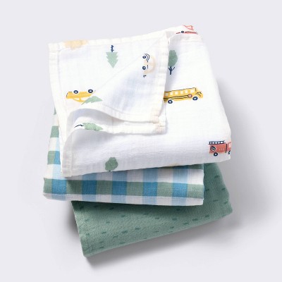 Muslin Swaddle Baby Blanket - Transportation - 3pk - Cloud Island™
