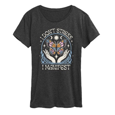 Women's - Instant Message - I Don't Stress I Manifest Celestial Butterfly Short Sleeve Graphic T-Shirt