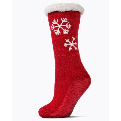 Memoi Women's Sweet Snowflake Tufted Top Plush Lined Slipper Socks Red 9-11