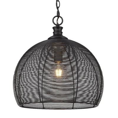 Dewdrop Industrial Pendant Light, Black Dome Hanging Ceiling Fixture with Gold Interior for Kitchen Island Dining Room