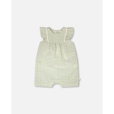 Deux par Deux Girl Romper Green Gingham