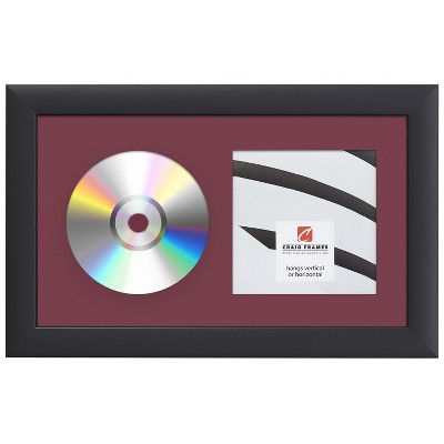 7x12 Black CD Picture Frame with Maroon Mat Contemporary 1"WB3, 1 Inch MDF with Glass, Wall Display for Signed CDs, Photos, and Inserts