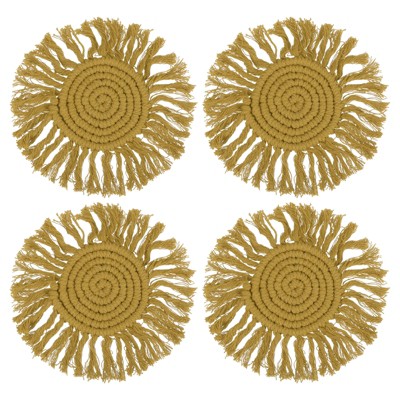 Unique Bargains Round Handmade Woven Absorbent Table Protection Boho Coasters
