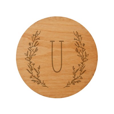 Personalization Mall Farmhouse Floral Personalized Initial Wood Coaster