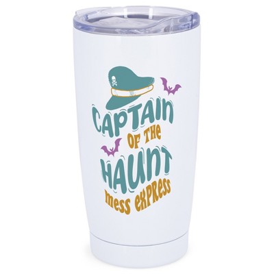 Elanze Designs Captain of the Haunt Mess Express Bats Halloween Wrap-Around Design 20 Ounce Stainless Steel On-The-Go Coffee Mug, Thermal Travel
