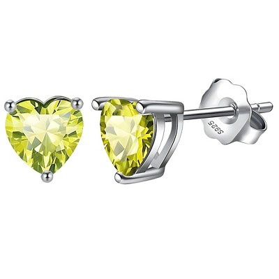 Birthstone Heart Earrings for Women by Ginger Lyne 6mm CZ Solitaire Stud Earrings Sterling Silver