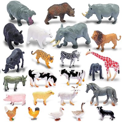 TEMI Mini Farm Animal Figures Set, Plastic Educational Toys and Cake Toppers for Kids
