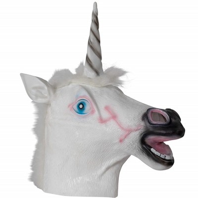 Skeleteen Unicorn Head Costume Accessory - Realistic White and Pink Animal Unicorn Horse Head For All Ages