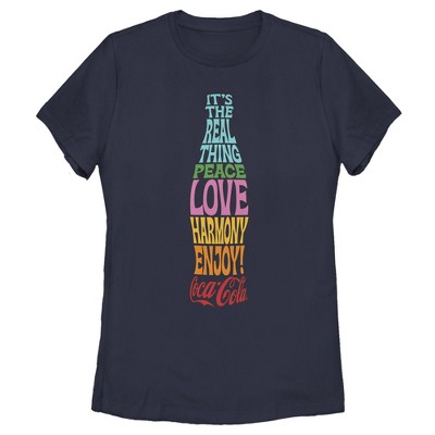 Women's Coca Cola Unity It's the Real Thing Bottle Logo T-Shirt - Navy Blue - 2X Large