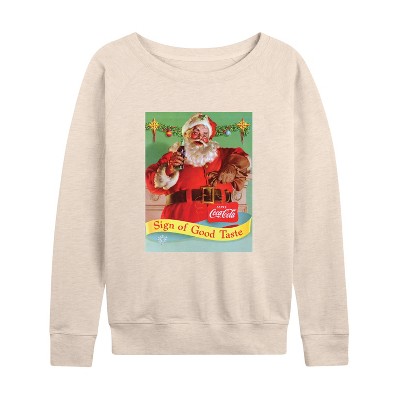 Women's - Coca-Cola - Sip Of Good Taste Vintage Coca Cola Santa Lightweight French Terry Wide Neck Long Sleeve Graphic Shirt