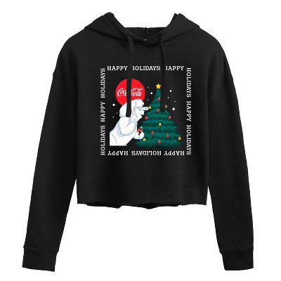 Women's - Coca-Cola - Happy Holidays Bears And Tree Cropped Graphic Hoodie