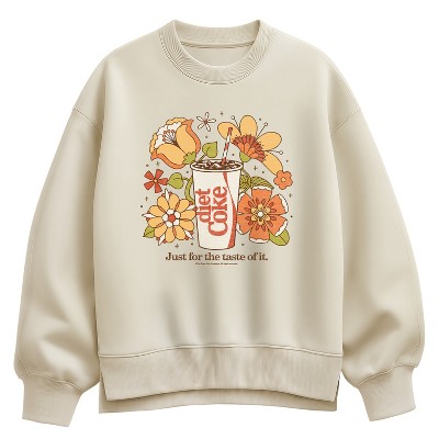 Women's - Coca-Cola - Diet Coke Retro Flowers Oversized Fleece Crew Sweatshirt