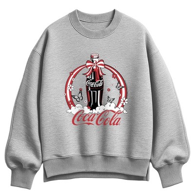 Women's Coca-Cola Retro Ribbon Bottle Oversized Fleece Crew Sweatshirt - Athletic Heather - Large