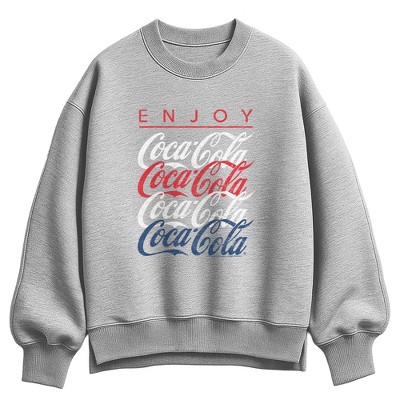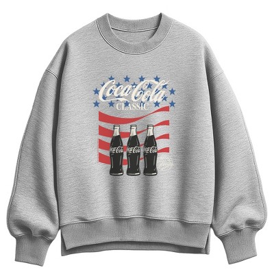 Women's Coca-Cola Red White and Blue Americana Oversized Fleece Crew Sweatshirt - Athletic Heather - Medium
