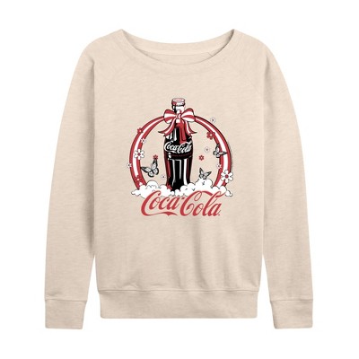 Women's Coca-Cola Retro Ribbon Bottle Lightweight French Terry Wide Neck Long Sleeve Graphic Shirt - Birch - Small