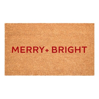 HomeRoots 17" X 29" Brown And Red Christmas Merry and Bright Outdoor Coir Door Mat