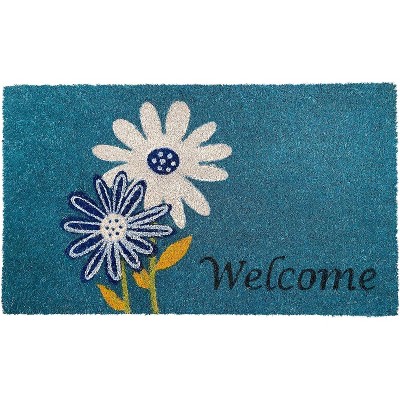 HomeRoots 17" X 29" Blue and White Coir Floral Welcome Outdoor Door Mat