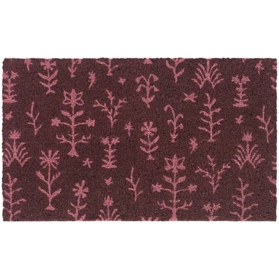 HomeRoots 17" X 29" Natural Pink and Green Coir Floral Welcome Outdoor Door Mat