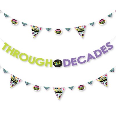 Big Dot of Happiness Through the Decades Party Letter Banner Decoration 36 Banner Cutouts and Through the Decades Banner Letters