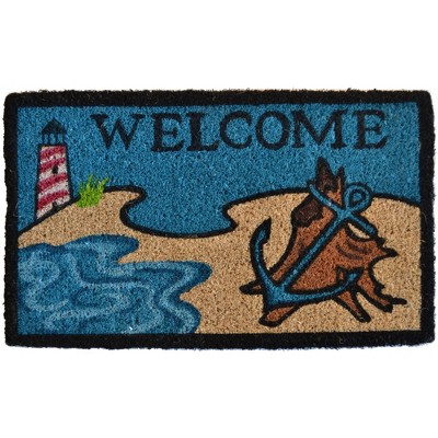 HomeRoots 18" X 30" Blue and Black Coir Anchor Welcome Outdoor Summer Door Mat