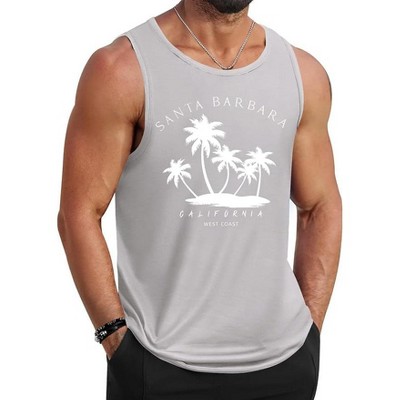 COOFANDY Mens Beach Tank Tops Summer Cotton Sleeveless Graphic T Shirts Palm Tree Casual Vacation Muscle Tank