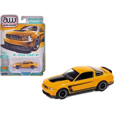 2012 Ford Mustang Boss 302 Yellow Blaze with Black Accents "Modern Muscle" 1/64 Diecast Model Cars by Auto World