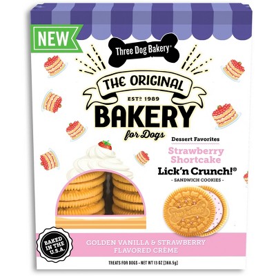 Three Dog Bakery Vanilla & Strawberry Flavor Shortcake Lick'n Crunchy Dog Treats - 13oz