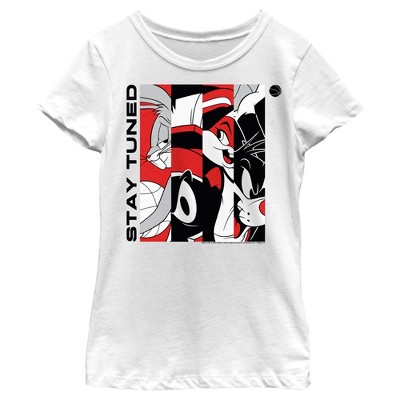 Girl's Space Jam: A New Legacy Stay Tuned Panels Red and Black T-Shirt