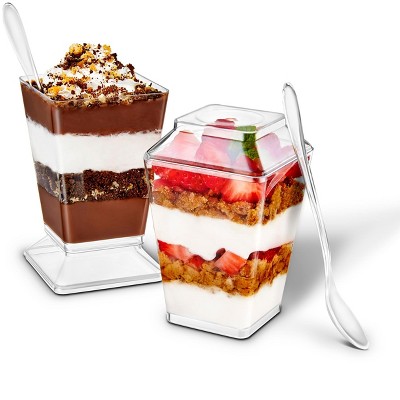 Stock Your Home 5 oz Clear Plastic Dessert Cups 800 Pack with Lids and Spoons Square Mini Parfait Cups for Desserts Pudding Shooters Appetizers