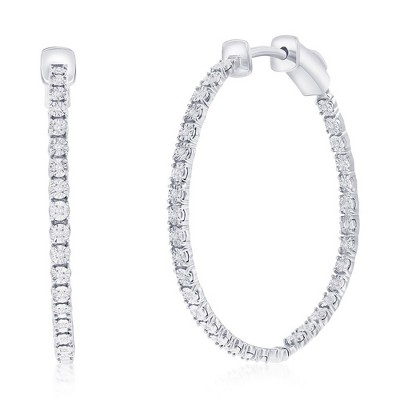 Diamonds D'Argento Sterling Silver, 32mm Inside-Outside Diamond Hoop Earrings - (66 Stones) - Silver