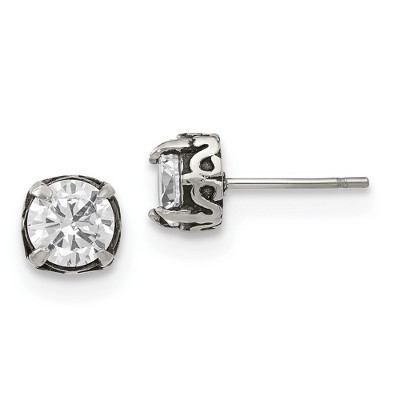 Black Bow Jewelry Blue & White Diamond 8mm Square Screw Back Earrings in Sterling Silver
