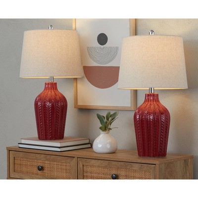 28.5" Abeline Resin Table Lamp (Includes LED Light Bulb) Brown - JONATHAN Y: No Assembly, UL Listed, Linen Shade