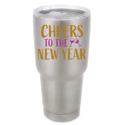 100 North 30 Ounce Stainless Steel On the Go Travel Tumbler With Push Top Lid, Cheers to the New Year Silver