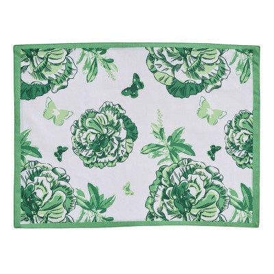 Patricia Heaton Home Green Florals And Flitters Reversible Placemat Set of 4