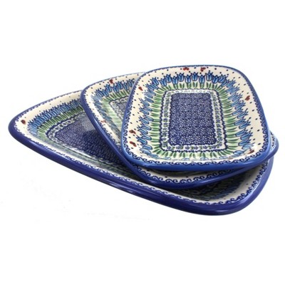 Storied Home Round Hand-Painted Stoneware Plate with 3 Various Pattern, Multicolor, Set of 12