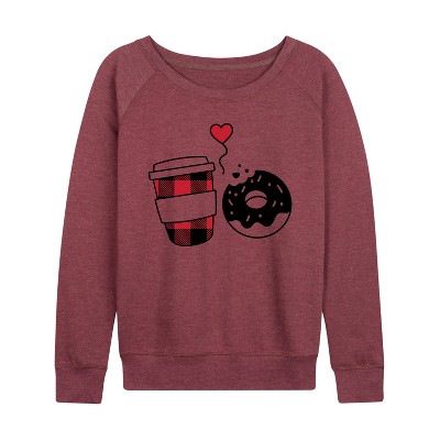Women's - Instant Message - Coffee And Donut Lightweight French Terry Wide Neck Long Sleeve Graphic Shirt