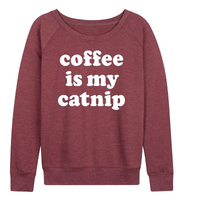 Women's - Instant Message - Coffee Is My Catnip Lightweight French Terry Wide Neck Long Sleeve Graphic Shirt