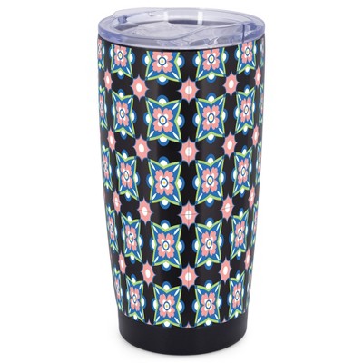 Elanze Designs Blue & Pink Moroccan Tile Motif Wrap-Around Design 20 Ounce Stainless Steel On-The-Go Coffee Mug, Thermal Travel Tumbler with Leak