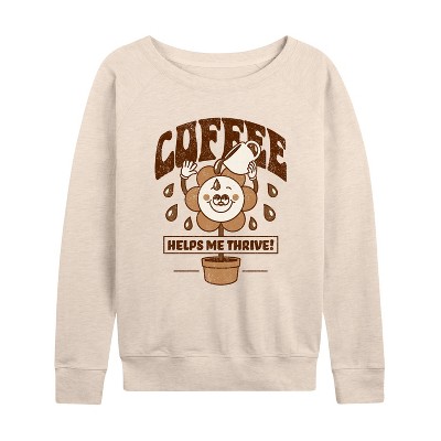 Women's - Instant Message - Coffee Helps Me Thrive Lightweight French Terry Wide Neck Long Sleeve Graphic Shirt