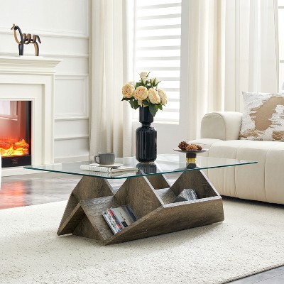 - glass top stone coffee table