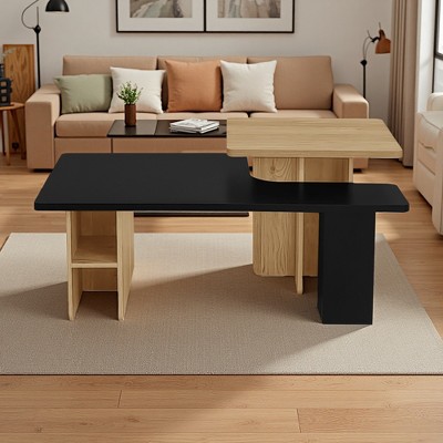Kumasinova Modern Nesting Coffee Table Set,70.86" Expandable Center Table with Smooth Surface,Space Saving Side Table for Living Room Furniture,Black